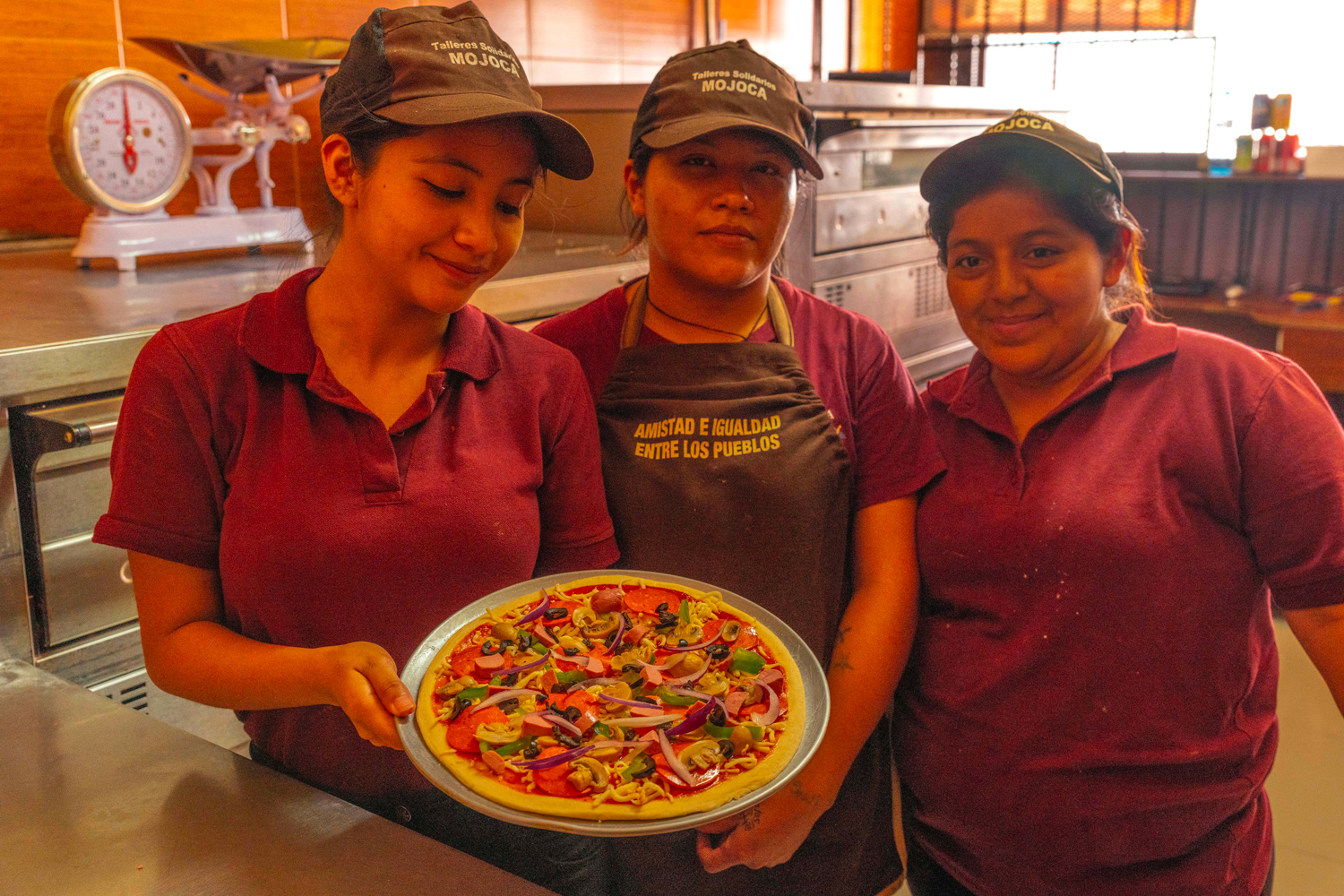 Plus loin, le comité de gestion s’est réuni pour discuter de l’attribution des bourses à certaines familles. Mojoca, malgré ses petits moyens, accorde du micro-crédit et des aides financières aux jeunes sélectionnés en fonction de leur dossier. D’autres bénéficient d’un toit, « la maison du 8 mars » ouvre ses portes aux filles, aux jeunes mamans et à leurs enfants qui sont les premières victimes de la rue, proies faciles pour les trafiquants. « Choisir de venir vivre dans la maison du 8 mars, c’est choisir de quitter la rue, c’est choisir d’amorcer un changement dans nos vies », nous explique Angelica tout en berçant son bébé. Devant la maison, 3 filles s’activent dans la petite pizzeria de rue du Mojoca, un petit commerce tenu par les jeunes pour rassembler quelques revenus pour financer le mouvement.