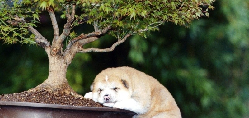 bigpreview_Funny Doggy Young Akita Asleep Under a Bonsai
