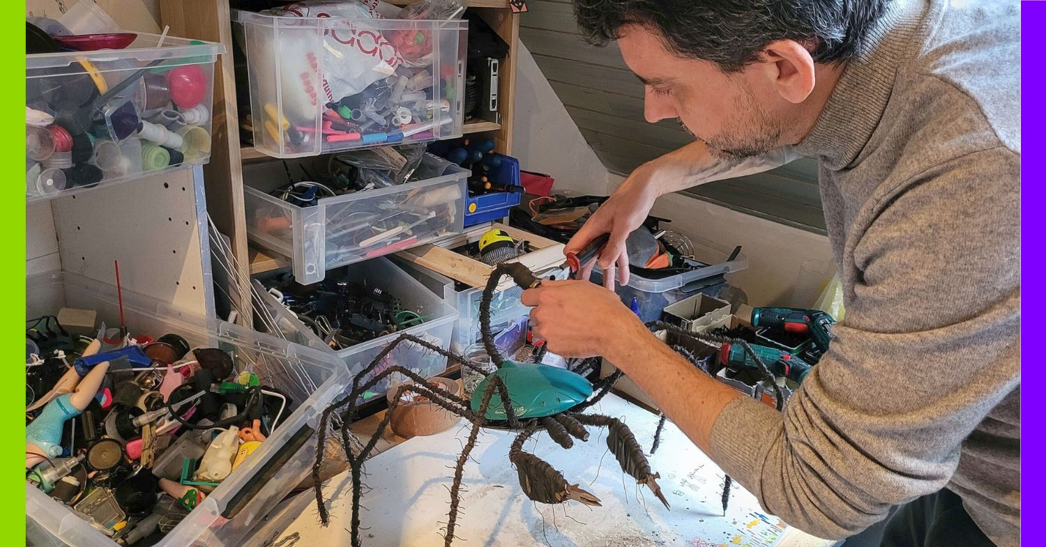 Adrien Vinet, qui officie sous le pseudo de Vortex Récupart, crée depuis dix ans des œuvres d’art à partir de déchets du quotidien. Au-delà de l’aspect ludique et créatif de son travail, l’artiste cherche à interpeller sur notre rapport aux objets et les dérives de nos sociétés ultra-consuméristes.