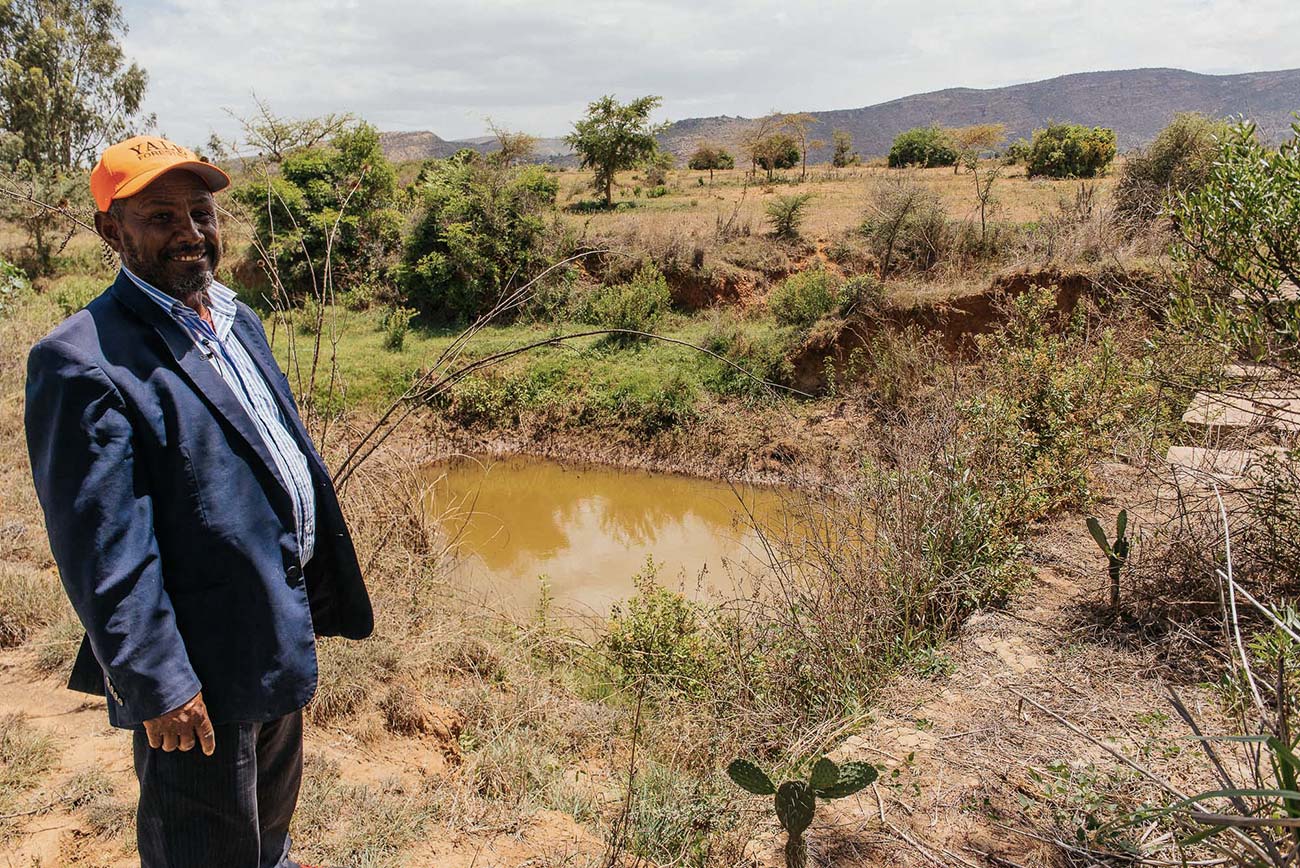 Nous marchons dans les pas du chef sous une chaleur suffocante. Il veut nous montrer chacune des réalisations qui font la fierté du village. Devant nous, une gigantesque vallée verte où des millions d’acacias poussent paisiblement. Le profond sillon d’une rivière est désormais rempli de plantations qui conservent l’eau de pluie et de nombreux barrages ont été aménagés. Près des parcelles de cultures, le résultat vaut de l’or : les puits gardent précieusement l’eau stockée depuis des mois. “Ce que nous avons réalisé ici est incroyable”, s’enthousiasme Abo Hawi. ”Avec notre simple volonté et en travaillant dur, on bénéficie tous de la transformation du village. Moi, je suis juste fermier, je n’ai jamais étudié, je pense qu’on peut faire de grandes choses avec la seule volonté de changer la vie”.