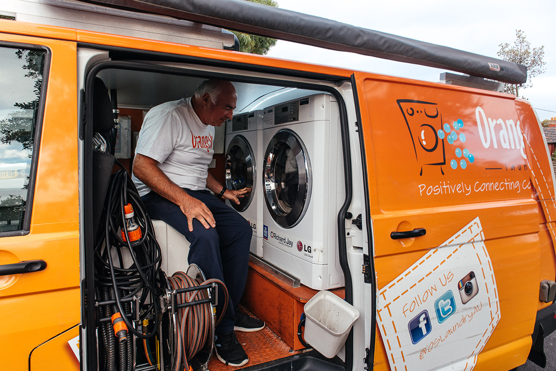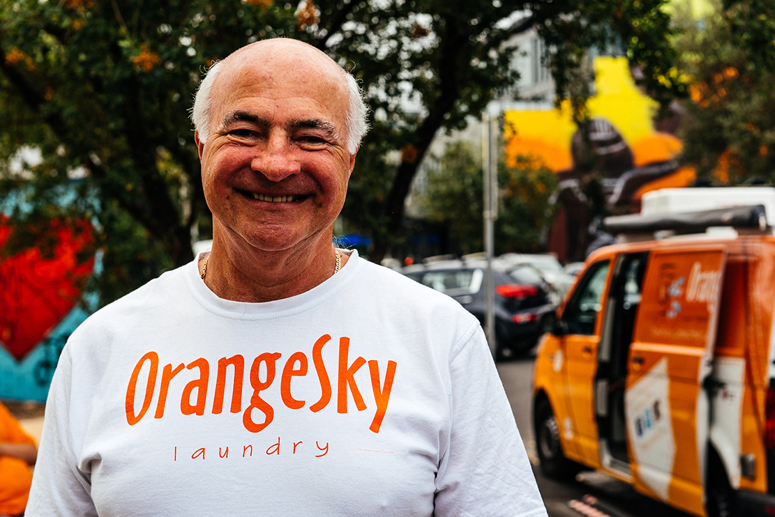 “Positively connecting communities” (“Connectons positivement les communautés”), c’est ainsi le slogan d’Orange Sky. Et Henry Tramer y croit fortement ! Il est bénévole depuis le début de l’aventure. Deux dimanches par mois, il pilote l’une des équipes melbourniennes de trois, quatre personnes d’Orange Sky Laundry. Ancien dentiste, il ressentait le besoin d’aider, de contribuer à sa manière à la société. Cette implication dans un monde meilleur, même à petite échelle, lui apporte énormément. “J’étais dans ma “bulle” en tant que dentiste. J’ai entendu à la radio le projet d’Orange Sky Laundry et je me suis rendu compte qu’une personne peut vite devenir SDF, en quelques jours. Selon moi, le principal avantage d’Orange Sky Laundry, c’est de se connecter avec ces gens qui sont sans-abri pour qu’ils ne se sentent plus exclus de la société. Cela rend leur vie plus riche. La lessive est juste un bonus.”