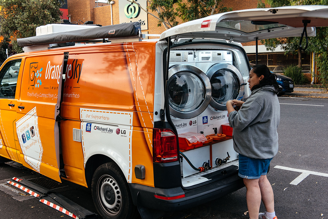 Orange Sky fournit aux gens de la rue, dans la plus grande simplicité, “des vêtements propres et des conversations positives et sans jugement”. Et les concepteurs du projet comptent bien l’exporter aux quatre coins du monde…