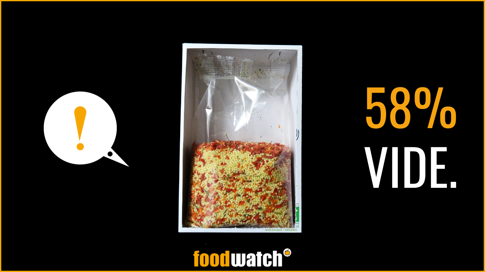 L’ONG lutte depuis 2002 en Europe pour une alimentation sans risques, saine et abordable pour tous et toutes. Militant pour plus de transparence dans le secteur alimentaire, l’organisation représente les consommateurs et défend leur droit à une alimentation qui ne porte atteinte ni aux personnes, ni à l’environnement. Véritable contre-pouvoir citoyen, foodwatch est un lanceur d’alerte indépendant qui refuse toute subvention des gouvernements et de l’industrie agroalimentaire. Tout comme chez Mr Mondialisation, de plus en plus de photos et de messages sont parvenus à l’ONG, montrant des aliments en petite quantité emballés dans des paquets démesurément grands et emplis de « vide ». Des marques n’hésitent pas à vendre de très gros paquets alimentaires contenant majoritairement de l’air. Le cas le plus populaire est probablement celui des chips dont la quantité n’est vraiment pas proportionnelle à la taille du contenant.