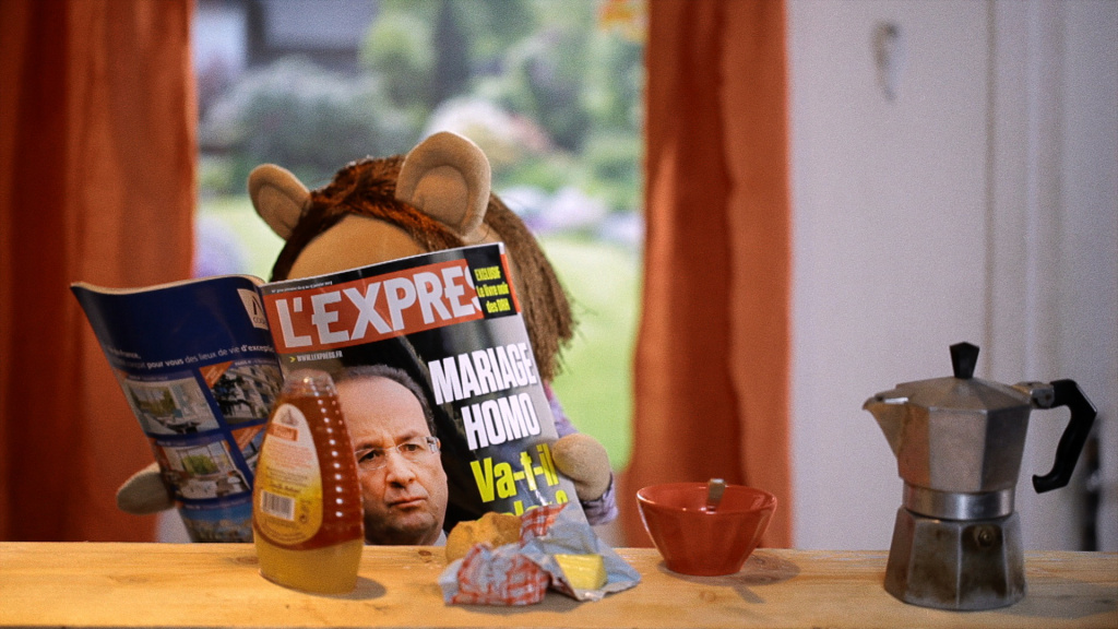 Ce que les deux jeunes cinéastes cherchent avant tout, c’est “mieux penser le changement” et apaiser le débat. Irène revient sur ce qu’il s’est passé en 2012 : “Paradoxalement, 2012 a été une année terrible dans la vie de beaucoup d’homosexuels en France. On a assisté à des moments très violents… Les plus jeunes faisaient pour la première fois l’expérience de l’homophobie. En donnant l’impression que la manif pour tous reflétait l’opinion du peuple français, les médias ont leur part de responsabilités. Quant aux politiques, Christiane Taubira, Dominique Bertinotti et quelques autres exceptés, ils n’ont pas réussi à défendre le projet comme ils l’auraient dû. Il aurait fallu montrer aussi le côté heureux et positif de cette évolution.” C’est pourquoi la mise à distance avec des peluches est primordiale pour le film. Cela permet d’apaiser les tensions et d’essayer autant que possible de donner la possibilité aux spectateurs d’avoir un regard neuf.