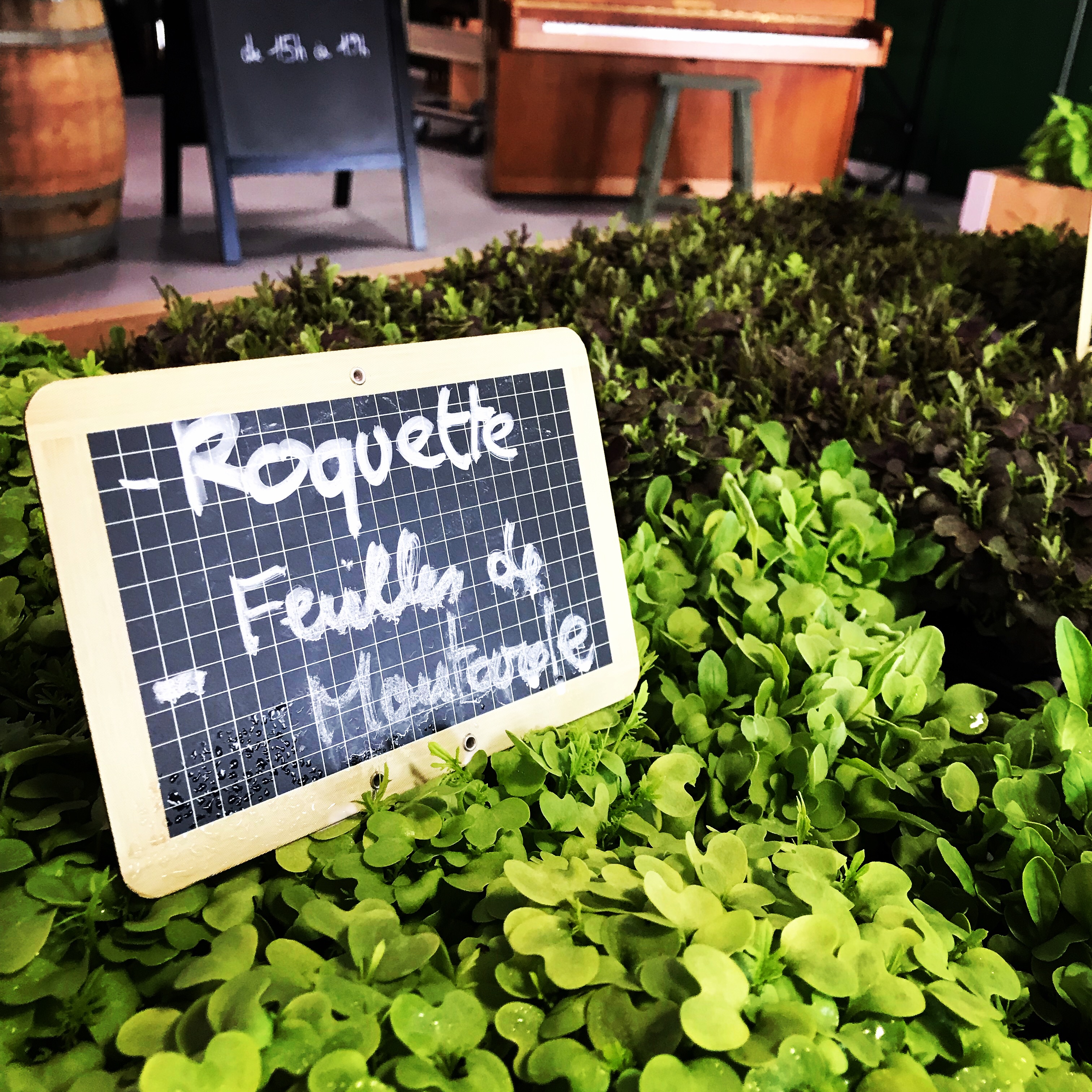 Le point de vente de 272 m² est adjacent à une ferme urbaine verticale de 130 m². Ici, les plantes poussent dans des tours hors-sol de plusieurs étages. On y trouve des salades, de jeunes pousses aux goûts originaux (d’huître, de moutarde) ainsi que des herbes aromatiques. Dans l’espace de vente, elles peuvent être achetées vivantes, dans leur pot en fibres de bois. Elles y côtoient le fruit du travail de producteurs locaux, cultivés près d’Angers et le plus souvent bio. Ici, toutes les alternatives pour assurer la subsistance alimentaire sont les bienvenues.