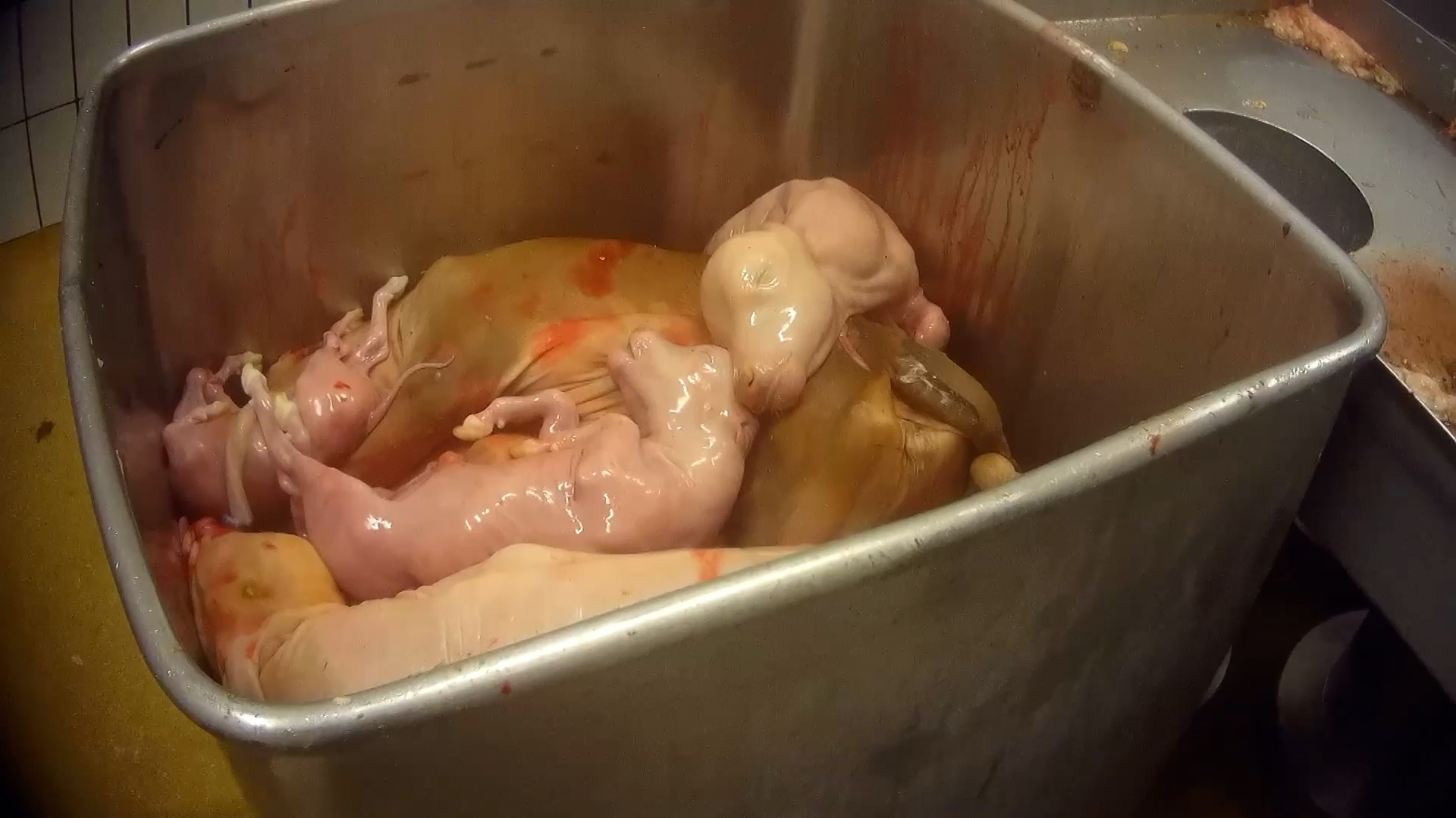 L’horreur ne s’arrête malheureusement pas là, le jeune employé filme également quotidiennement l’arrivée d’une cinquantaine de vaches gestantes et parfois presque à terme sur la chaîne d’abattage. Pourtant, la réglementation interdit de transporter des vaches au-delà du huitième mois de gestation. Ces jeunes veaux mourront par suffocation dans l’utérus de leur mère une fois abattue. Mais l’entreprise ne lésine sur aucun profit : chaque jour, un travailleur est chargé de prélever la totalité du sang de ces fœtus avortés par ponction cardiaque. Le sérum est ensuite extrait du sang et commercialisé par SeraFrance sous la forme de sérum de veau fœtal (SVF), utilisé en laboratoire pour la culture de cellules et de tissus in vitro.