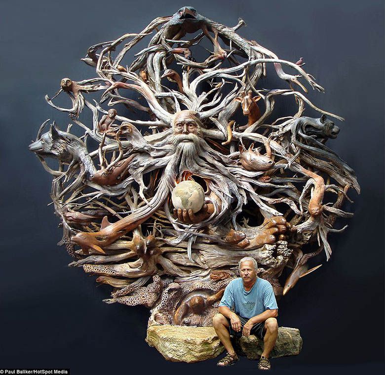 Il récupère le bois de l’océan pour en faire d’intrigantes sculptures