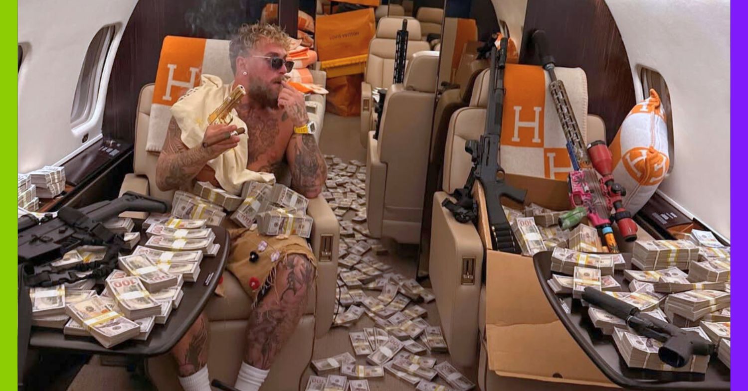 Vanité. Vacuité et illusions. Le pic de la civilisation occidentale dans une image… Voici Jake Paul, un des plus gros « influenceurs » américains. Le 22 décembre 2025, il publiait cette photographie dans son avion privé de 20 millions de dollars. Des liasses de billets, des marques et des flingues. Son cliché est présenté comme l’objectif suprême de l’existence : « Le rêve américain », dit-il, suivi d’un mot d’encouragement pour ses millions de followers pauvres : « Commencez aujourd’hui ! Croyez-y ! Échouez ! Travaillez ! » et autres bullshit type coach de chez Wish.
