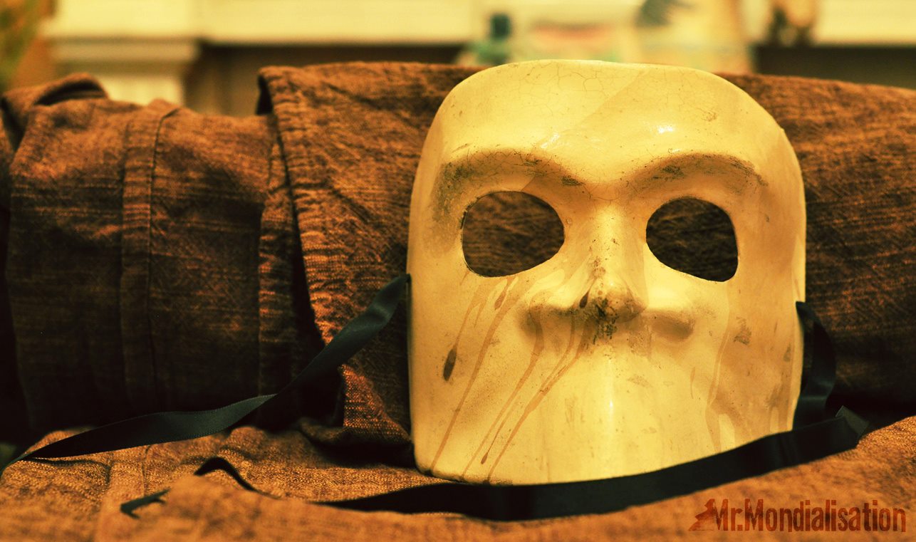Masque réalisé au profit d’un artiste belge qui dénonce la finance à travers ses œuvres. N’hésitez pas à demander des infos à l’artisane : mlle.mondialisation@gmail.com