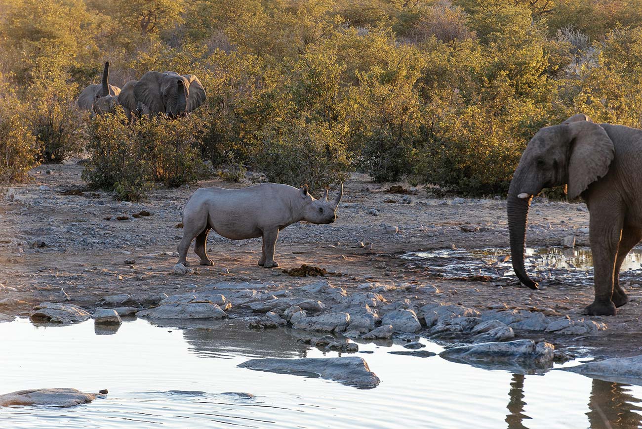 Notons que le drame animalier le plus médiatisé du moment est le massacre des rhinocéros. En Namibie comme partout dans le monde, le rhinocéros est traqué par les braconniers pour ses cornes aux vertus prétendument thérapeutiques ou aphrodisiaques, selon certaines croyances. Au marché noir, la corne de rhino vaut plus que l’or. Le rhinocéros blanc du Nord a officiellement disparu depuis la mort de Soudan, le dernier mâle, en mars dernier, tandis que la population de rhinocéros noirs est descendue à environ 5 200 individus. Pour les rhinocéros d’Asie, inquiétude également : il n’y a que 3 200 rhinocéros indiens survivants, environ 76 rhinocéros de Sumatra et 60 rhinocéros de Java. Bilan : plus que 30 000 rhinocéros dans le monde dont 20 000 rhinocéros blancs du sud de l’Afrique, l’espèce la plus répandue.