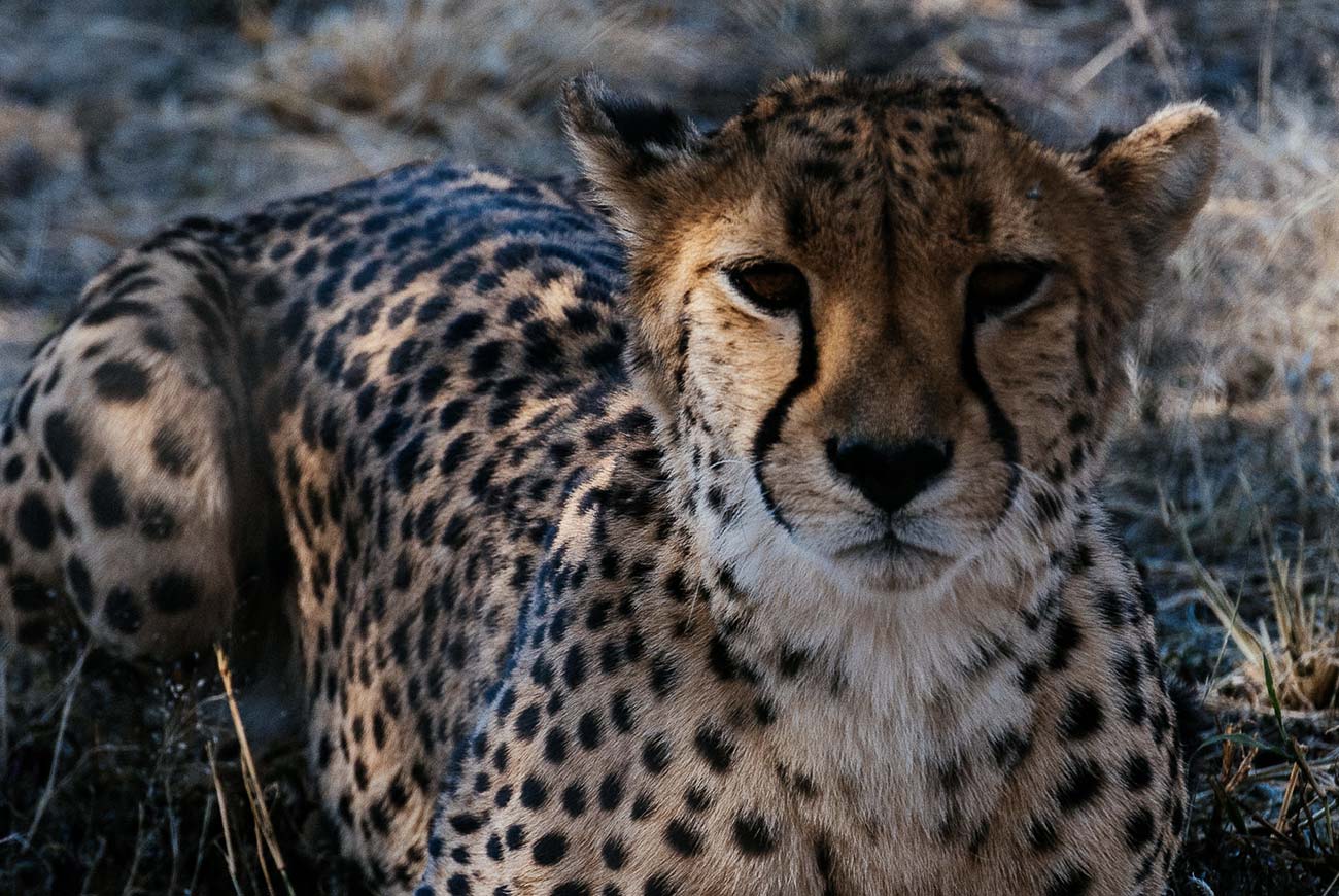 Le guépard est d’une rapidité inégalée, « dessiné » dans sa chair pour la vitesse. Le félin est capable d’atteindre 110 km/h en 3 secondes et au sommet de sa vitesse, sa foulée peut atteindre jusqu’à 7 mètres de long. Avec de longues jambes et un corps très mince, le guépard est assez différent de tous les autres « chats ». Sa physiologie et sa morphologie sont très particulières, parfaitement adaptées pour survivre à son milieu naturel. Par ailleurs, leur couleur et leurs tâches sont une forme de camouflage pour se cacher des chasseurs et des autres prédateurs. Mais ce cadeau de l’évolution ne suffit plus pour survivre…
