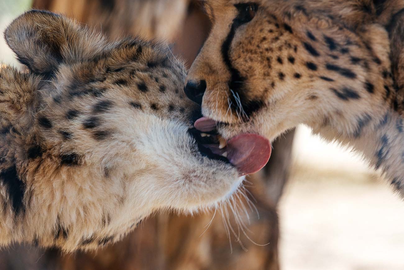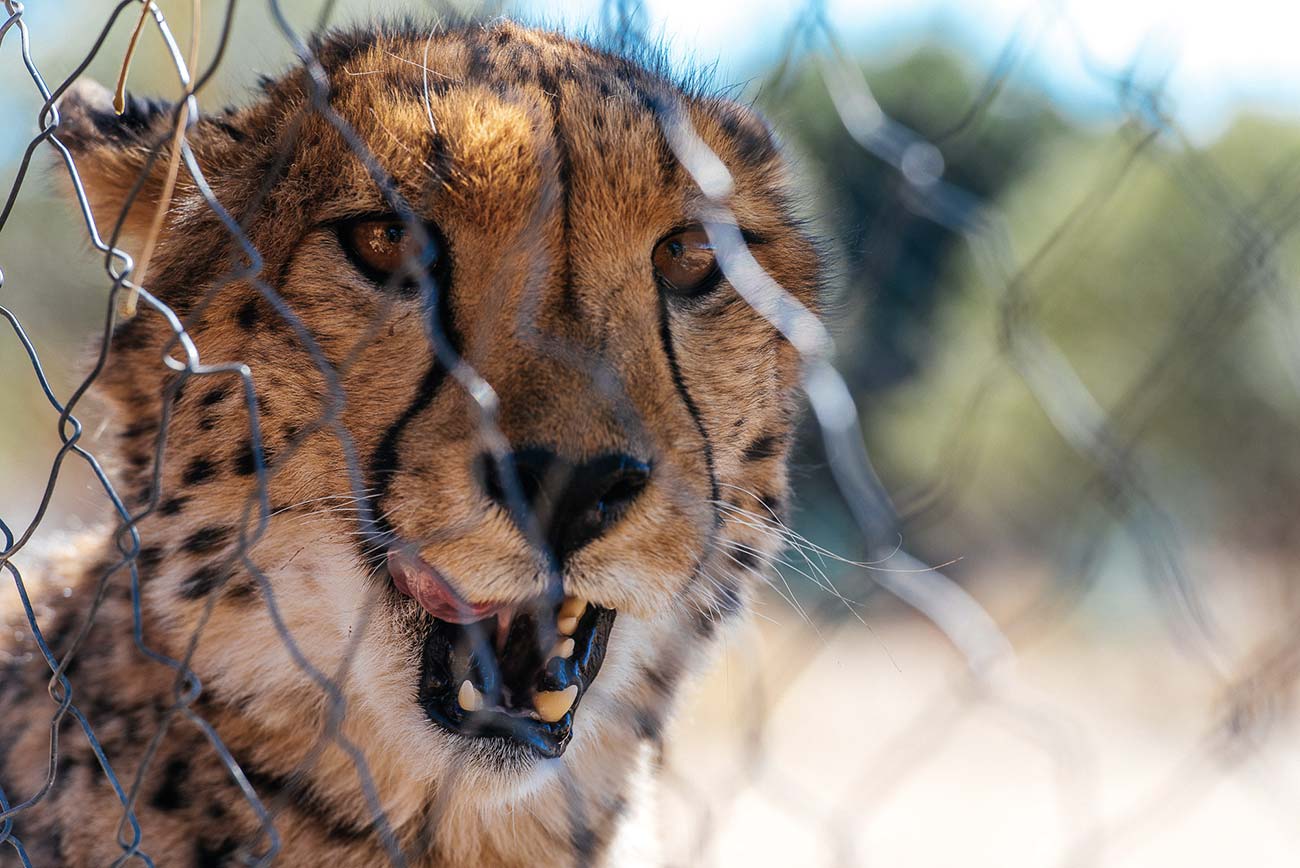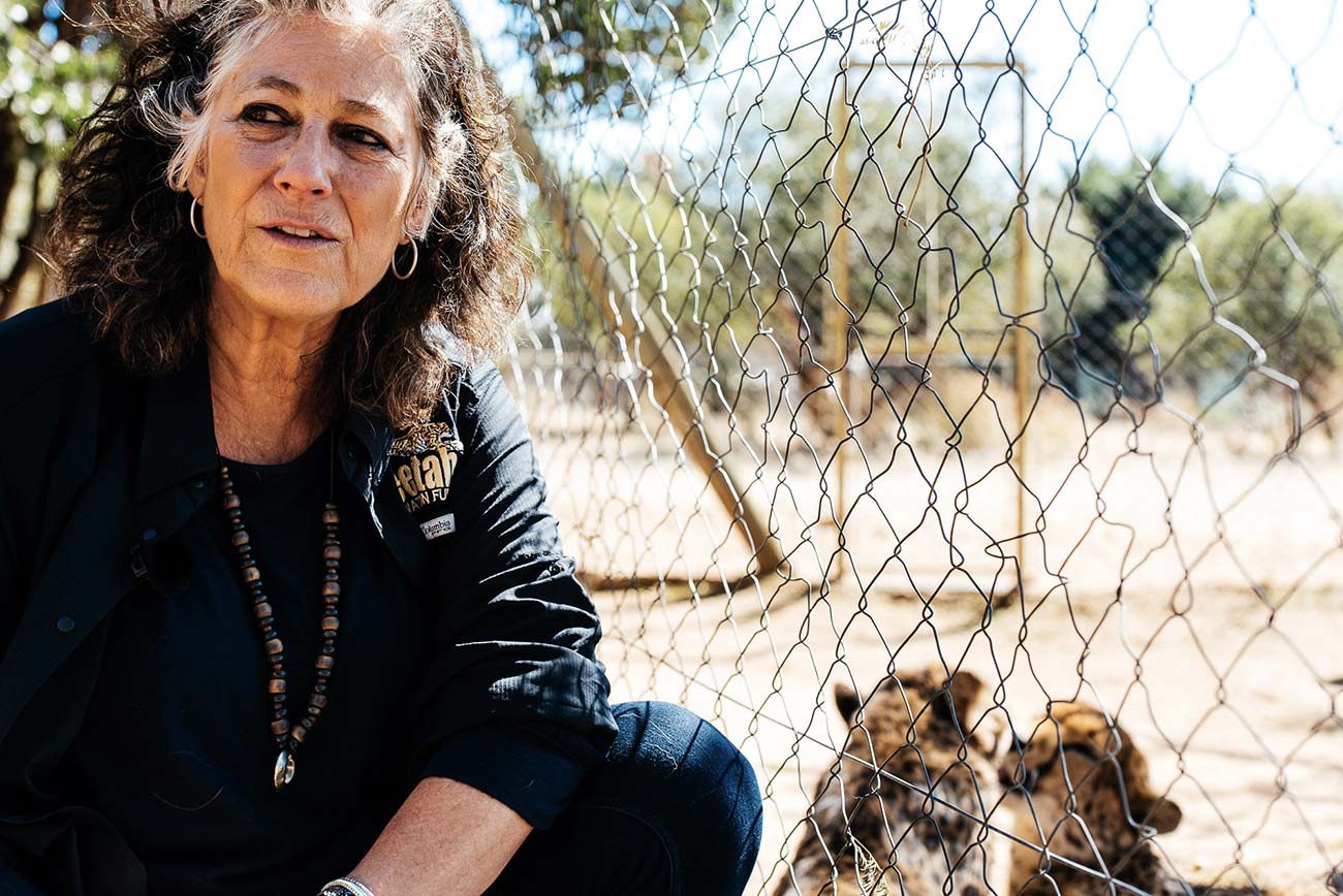 Fondé en Namibie en 1990 par une Californienne, Dr. Laurie Marker, le Cheetah Conservation Fund (CCF – Fond de Conservation pour les Guépards) est un des leaders mondiaux dans la recherche et la préservation des guépards. Véritable amoureuse de cet animal, cette médecin vétérinaire a multiplié les voyages ici depuis les années 70 avant de véritablement s’y installer et vivre au quotidien à côté des félins : « pour moi, le guépard est l’animal le plus fascinant de la planète », nous dit Laurie Marker. « C’est l’espèce de grand félin la plus singulière sur plus de 40 espèces différentes. Je voulais réellement comprendre pourquoi nous sommes en train de les perdre, pourquoi les fermiers les tuent et les détestent. Je voulais comprendre aussi pourquoi le monde entier ne sait pas que cet animal si fascinant est fragile et proche de l’extinction. » Loin des yeux, loin du cœur ?