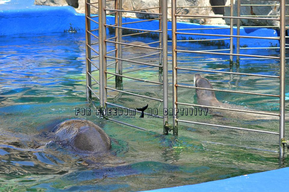 En juin 2014, une jeune activiste a rapporté de nombreuses images du parc Marineland, montant un dossier photographique assez complet des conditions de vie des animaux du parc. Des aspects que le grand public ne voit pas forcément. Pour conclure cet article, voici quelques unes des photographies de l’investigation, qu’il conviendra à chacun d’interpréter librement : (toutes les photographies sont estampillées d’un « For Freedom, no captivity » car l’auteur ne veut pas qu’elles soient utilisées dans un but autre que celui de la dénonciation)