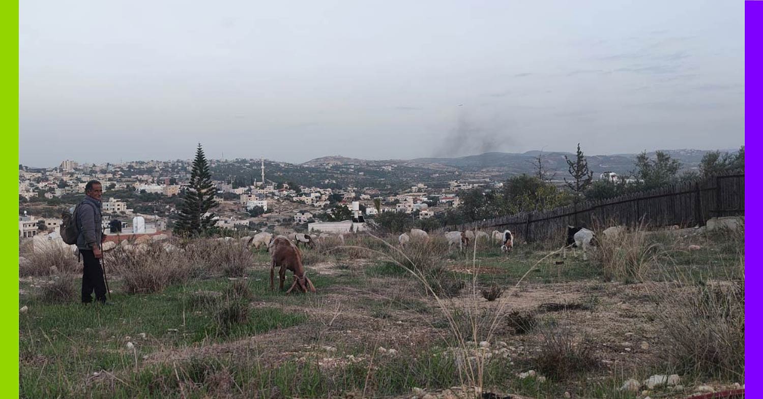 Nous observons le colonialisme pastoral : se découvrant éleveur·euses, les colons utilisent les troupeaux comme une arme de destruction. Les bergers sont souvent de très jeunes Israéliens, enrôlés dès le plus jeune âge dans des groupes tels que Hilltop Youth, groupe connu pour installer des avant-postes illégaux et mener le harcèlement violent contre les Palestiniens. Leur politique est celle de l’intimidation et de la destruction: ils font pâturer les oliviers pour ruiner toute possibilité de récolte, cassent les clôtures et les murets quand ceux-ci leur font barrage et s’approchent chaque jour un peu plus des maisons en espérant une réaction violente de la part des habitant·es.
