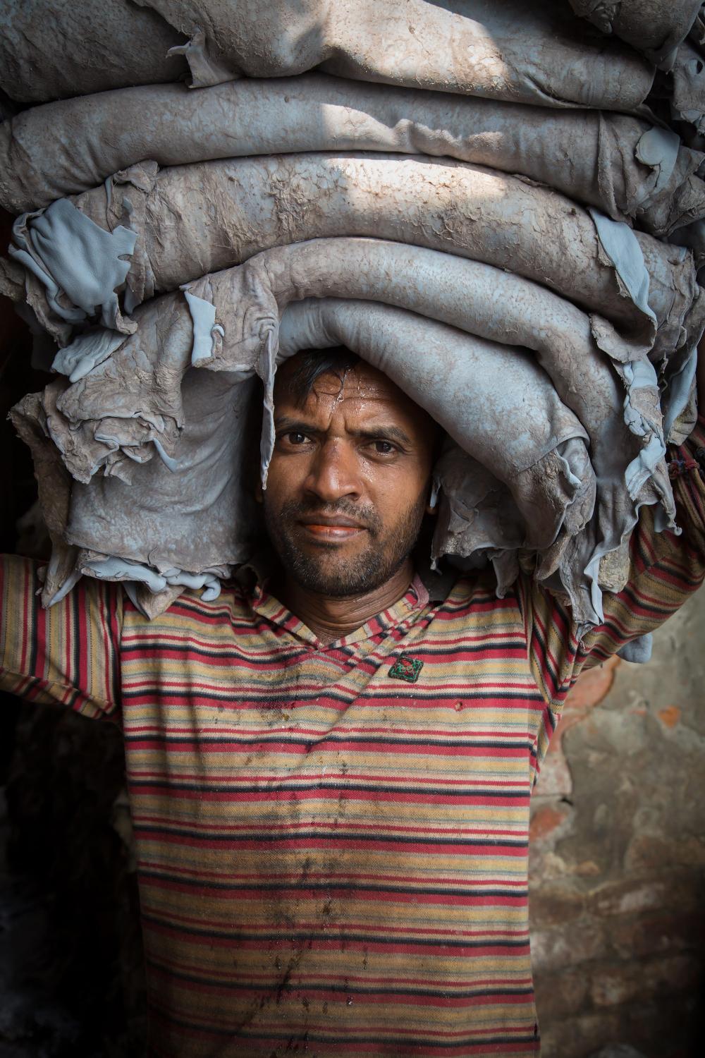 Plus de 75 000 habitants vivent dans le quartier d’Hazaribagh et la plupart d’entre eux – adultes comme enfants – travaillent dans les usines et les tanneries. Le tannage (la transformation de peaux d’animaux en cuir) – plus particulièrement lorsque celui-ci est réalisé avec des techniques obsolètes comme c’est souvent le cas au Bangladesh – inclut de nombreux traitements chimiques et génère une quantité conséquente de déchets dont la toxicité est dangereuse aussi bien pour l’environnement que la santé humaine.