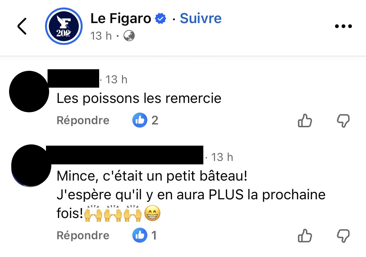 Sur la page du Figaro, on fête la mort de 42 personnes noyées