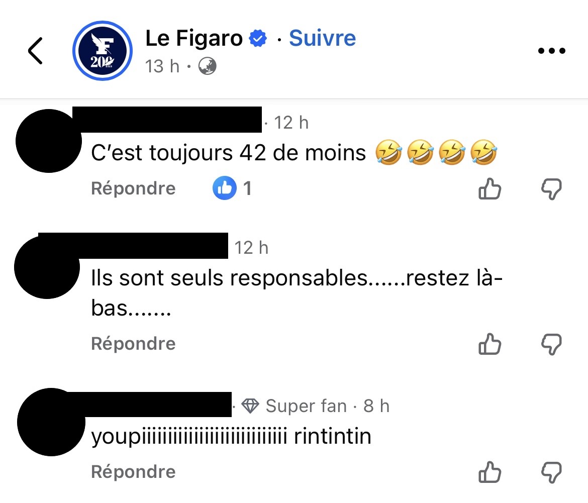 Sur la page du Figaro, on fête la mort de 42 personnes noyées