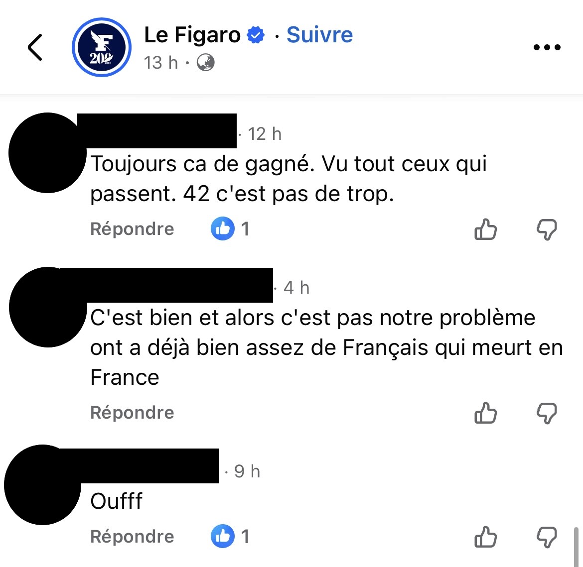 Sur la page du Figaro, on fête la mort de 42 personnes noyées