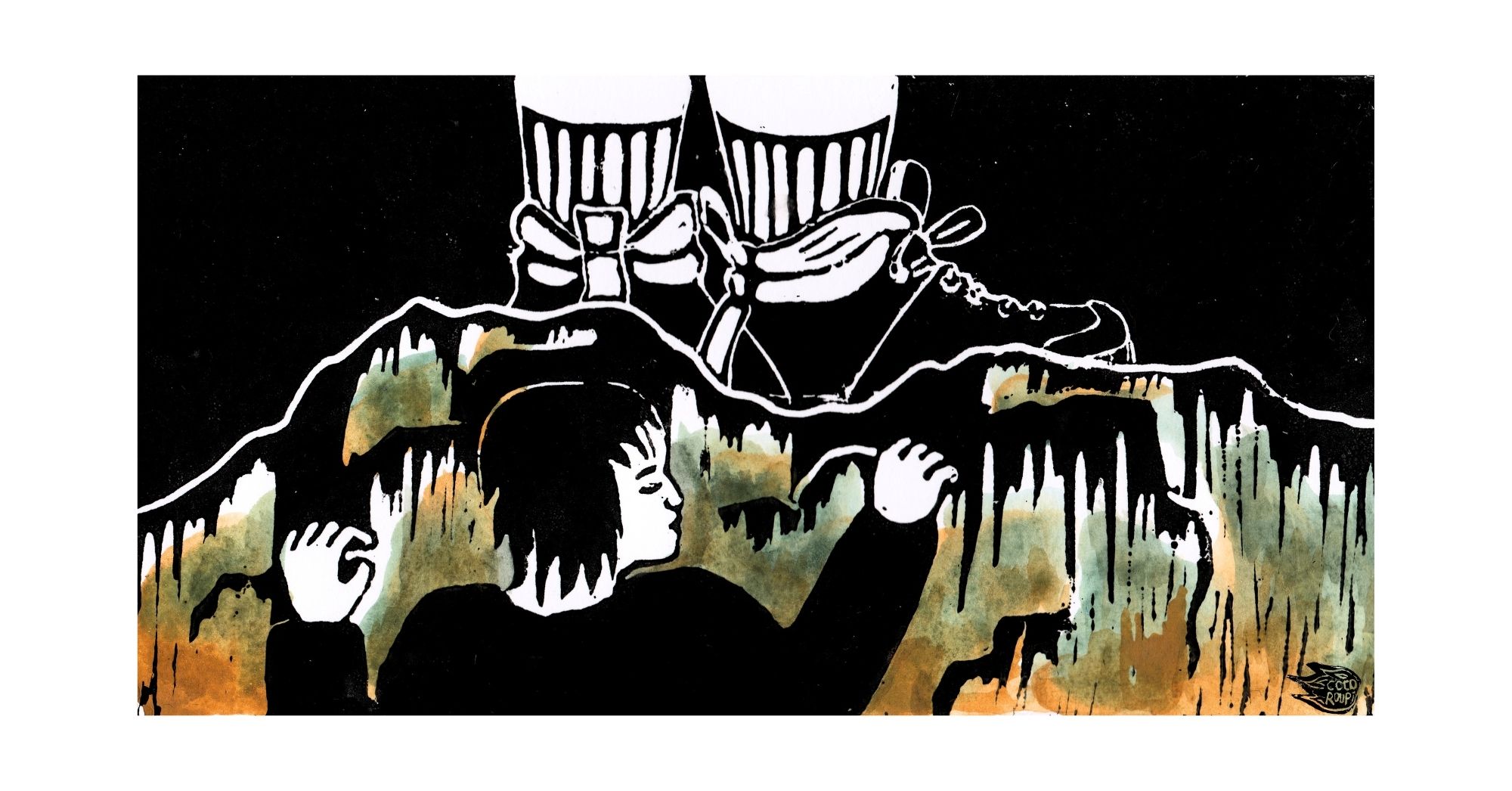 @cocoroupi Montagnes Gouache et linogravure sur papier 10,24 cm x 800 Janvier 2026
