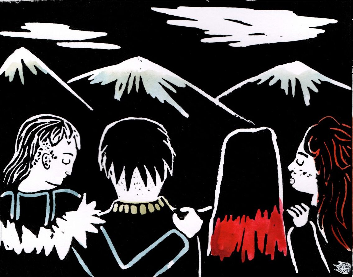 @cocoroupi _Vue sûre_ Gouache et linogravure sur papier 10,24 cm x 800 cm Janvier 2026